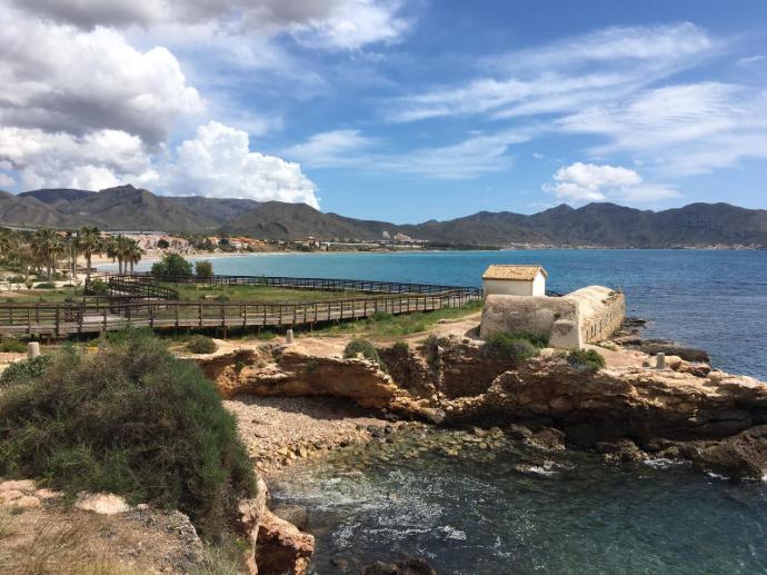 En ella se han encontrado restos cerámicos de época romana, por lo que toda ella está catalogada como yacimiento arqueológico. No en vano frente a Isla Plana, se encuentra una domus romana puesta en valor. De época más actual también se conservan restos de construcciones que servían a los pescadores como refugio.